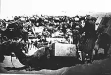 About 10,000 Egyptian Camel Transport Corps camels concentrated at Romani as well as innumerable troops prior to the attack.[20][21] Until more camel transport was accumulated at Romani and Pelusium for the distribution of supplies and drinking water from railhead, the firepower of the main defences could only be increased by moving up the machine gun companies of 53 and 54 Divisions.[22]