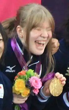Eiko Kakehata (欠端 瑛子, Kakehata Eiko, born 19 February 1993[3]) is a Japanese goalball player who won a gold medal at the 2012 Summer Paralympics.[4]