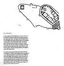 He improved the living luxury immensely by erecting a new stair tower and adding a bakery, a bath and several mured toilets to the curtain wall. Also the main castle got a new main gate towards the west.