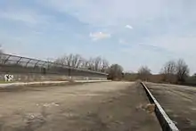 The original plan of the Parkway was to extend to Bloomfield Avenue in West Caldwell on the northern end and to Route 124 in Chatham on the southern end. There is a complete cloverleaf interchange at where the parkway would have met Route 24, which would have been Interchange 5 on 24 (and there were once blank signs erected on 24 West). The interchange was left abandoned since it does not connect to a road, and many plants have grown over the abandoned pavement. The bridge over Route 24, which would have been part of Eisenhower Parkway, as well as what would've been the entrance and exit ramps, cannot be accessed by vehicle but are easy to reach by foot or bike. Hikers and bikers must go north along the power lines from the intersection of Brooklake Road and Delbarton Drive until they reach the fence along Route 24, then follow the fence east for about half a mile.[3] NJDOT gave the abandoned overpass a different street name, Triborough Road, suggesting that the southern extension of the Eisenhower Parkway would use that name instead. To this day, there is still a sign that reads "Triborough Road" hanging from the abandoned overpass. The abandoned interchange is at mile marker 5.70 on Route 24.