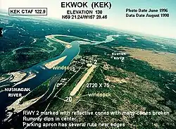 - ↑ "Airport diagram for Ekwok (KEK)". Federal Aviation Administration. December 25, 2003. Archived from the original (GIF) on 2005-01-19.