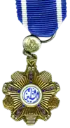 The Order of the Two Niles (Arabic: وسام النيلين, romanized: Wisām an-Nīlayni) is a state decoration of Sudan established on 16 November 1961 during Ibrahim Abboud's military government.[1] The Order of the Two Niles – White and Blue Niles – is Sudan's second-highest honour after the Order of the Republic. The order is given to Sudanese and foreigners, civilians and military, who provided great services to the state.[2] The order has five classes.[3][4]