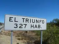 El Triunfo is a town in La Paz Municipality, Baja California Sur, Mexico, about 4.5 miles north of San Antonio. The town is located at an elevation of 483 meters (1,585 feet) above sea level and has a population of 313 as 2020.[1] It is a former mining town.