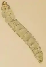 The larvae feed on various species of grasses, including Arrhenatherum elatius, Avena, Avenula pratensis, Festuca ovina, Phleum, Poa nemoralis and Poa trivialis. They mine the leaves of their host plant. The mine has the form of a blotch in the leaf tip. A single larva may mine two to three leaves.[3] Larvae can be found from September to the end of April and again (after overwintering within the mine) from June to July. Young larvae are yellowish white with a light brown head, while the body becomes grey green when they are full-grown.