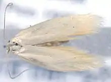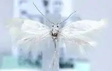 The wingspan is 13–18.5 mm (0.51–0.73 in). The forewing ground colour varies from snow white to yellowish white. The hindwings vary from yellowish white to grey.[1]