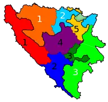 | Federation of Bosnia and Herzegovina | 1st | Una-Sana Canton and Canton 10 | 3 |