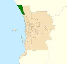 The district boundaries were redistributed in 2019 and saw the suburb of Quinns Rock being removed from the electoral district.[2]