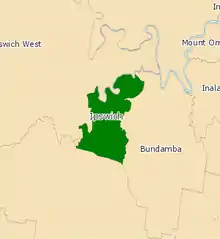 Ipswich is a Legislative Assembly of Queensland electoral district on the Brisbane River, west of Brisbane in the Australian state of Queensland. The electorate includes Ipswich and its suburbs, south and east of the Bremer River, west of Bundamba Creek and north of the Cunningham Highway.[1]