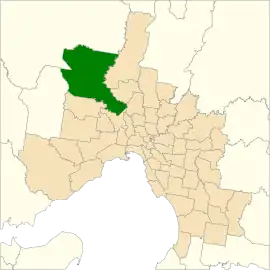 It is a new district that was created in the fast-growing outer northwestern fringe of Melbourne from areas in the district of Macedon. It is centred on the city of Sunbury, and includes the towns of Diggers Rest, Bulla, Westmeadows and Gladstone Park.[2]