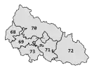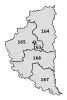 The electoral districts were formed in a way that the voters were distributed among them as evenly as possible. The law stipulates that the deviation of the number of voters in the electoral district from the national average should not exceed 12%.[7] At the time of electoral districts formation in 2012, this average was 161,125 voters.[8] The law also stipulates that each electoral district must be within one administrative unit of the first level (oblast, city of Kyiv or Sevastopol, Autonomous Republic of Crimea), i.e. it is not allowed for a part of an electoral district to be in one administrative unit and another part in another unit. In addition, territories inhabited by national minorities and adjacent to each other must be included into one electoral district. Referring to this provision, the Hungarian national minority in Zakarpattia Oblast demands the restoration of Tisza electoral district, which existed prior to 2012, but in 2012 the Hungarians were divided between 73rd, 68th and 69th electoral districts, where they now are the minority of voters, which deprived them of the ability to elect their own deputy to the Verkhovna Rada.[9][10] They have been denied every time,[11] so the Zakarpattia Hungarian Culture Society since 2014 was threatening to sue Ukrainian government in the ECHR for refusing to set up an electoral district that would include territories of compact ethnic Hungarian habitation.