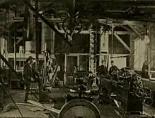 The steam power house was 150 by 70 feet (46 m × 21 m) and was a wooden building. It contained six 60-h.p. flue tubular boilers and three 155-h.p. McEwen engines directly connected to Westinghousc 500-Volt direct current generators. The boilers were fed with hot water from the blast furnaces. The switchboard was of marble, having six panels. It contained Weston ammeters and voltmeters and Westinghouse circuit breakers.