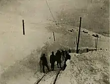 The snow on the tracks of this road was 10 feet (3.0 m) deep in some places in the winter of 1903/04, but the company was able to operate it every day. The snow plow equipment consisted of two home-made pilot plows which were attached to locomotives.