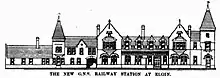 - ↑ "Great North's New Station at Elgin". Northern Scot and Moray & Nairn Express. Scotland. 6 September 1902. Retrieved 15 November 2021 – via British Newspaper Archive.