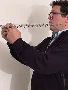 In 2019 he was commissioned by Jean-Luc Martinez, director of the Louvre Museum, Paris, to create a sculpture. This followed commissions to Georges Braque, Anselm Kiefer, Cy Twombly, and François Morellet. In January 2020, L'Onde du Midi was inaugurated, hovering over 19th century stairs on the North side of the Louvre Colonnade. The work is a succession of 128 aluminium tubes, painted blue, that undulates from order to chaos following an algorithmic choreography.[1][2][3][4][5]