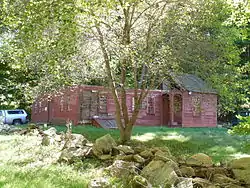 The Elias Sprague House is located in a rural setting in southwestern Coventry, on the south side of South Street a short way east of Nathan Hale State Forest. It is a 1+1⁄2-story wood frame Cape style house, with a gabled roof, central chimney, and clapboarded exterior. Its main facade is five bays wide, with a center entrance. The interior follows a typical central chimney plan, with a narrow entrance vestibule, parlors on either side of the chimney, and the kitchen behind it. Original period features include wooden paneling and trim, and several doors with original strap hinges.[2]