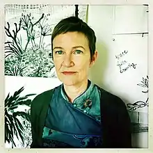 Elisabeth Condon was born in Los Angeles.  She completed her BFA in Painting at Otis Art Institute of Parsons School of Design in 1986, as well as studying at UCSD for 1 year and UCLA for 2 years.  She completed her MFA in Painting at the School of the Art Institute of Chicago in 1990 before moving to Brooklyn in 1992. She has taught extensively in Florida, and travelled widely for research and residencies. She curates exhibitions about topics that are relevant to her own practice, including paint pouring and contemporary reinterpretations of classical Asian painting.[24] Condon has also run an art criticism blog, Raggedy Ann's Foot, since 2007.[25]