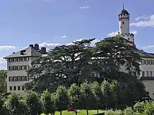 Elisabeth Juliana Francisca married at Homburg Castle[6][7] on 7 January 1702[5][6][8][note 2] to Fürst Frederick William Adolf of Nassau-Siegen[note 3] (Nassauischer Hof, Siegen,[11] 20 February 1680[2] – Nassauischer Hof, Siegen,[11] 13 February 1722[12]), the eldest son of Fürst William Maurice of Nassau-Siegen and Princess Ernestine Charlotte of Nassau-Schaumburg.[4] On the death of his father in 1691, Frederick William Adolf succeeded his father as the territorial lord of the Protestant part of the principality of Nassau-Siegen and co-ruler of the city of Siegen.[11] He possessed the district of Siegen (with the exception of seven villages) and the districts of Hilchenbach and Freudenberg. He shared the city of Siegen with the Catholic Fürst of Nassau-Siegen.[13] Frederick William Adolf also succeeded his father as count of Bronkhorst, lord of Wisch, Borculo, Lichtenvoorde and Wildenborch, and hereditary knight banneret of the Duchy of Guelders and the County of Zutphen.[14] Because he was still a minor, he was under the custody and regency of his mother until 1701.[11][7]