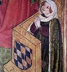 Elisabeth of Bavaria-Landshut (1383 – 13 November 1442), nicknamed "Beautiful Beth", was an Electress of Brandenburg by marriage to Frederick I, Elector of Brandenburg. She acted as regent of Brandenburg during the absence of her spouse.