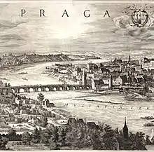 View of Prague's bridge over the Vltava river, 1606. One of Elizabeth Weston's poems was On the flooding of Prague that occurred after continual rains
