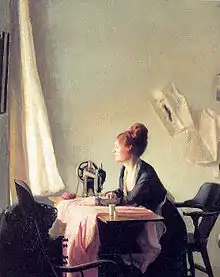 Elizabeth Okie Paxton (1878–1972)[nb 1] was an American painter, married to another artist William McGregor Paxton (1869–1941). The Paxtons were part of the Boston School, a prominent group of artists known for works of beautiful interiors, landscapes, and portraits of their wealthy patrons. Her paintings were widely exhibited and sold well.[1]