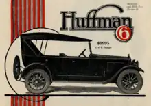 Huffman Brothers Motor Company was founded in 1918, in the town of Elkhart, Indiana, United States. It began manufacturing commercial vehicles between 1918 and 1919.[1] In September 1919, the company announced the production of new models, under the brand name Huffman Six which were introduced in 1920.[1] All cars manufactured by the company had a six-cylinder engine. In 1920, the company released Model R, a touring car with five seats. It had an engine that produced 55 horcepower (41 KW), and its chassis had a wheelbase with a length of 305 cm (120 in). 187 units were manufactured.[1][2][3] The company also manufactured Huffman Truck, a light truck with the payload capacity between 907 kg (2000 lbs) and 2495 kg (5500 lbs). Its wheelbase had a length of 355.6 cm (140 in).[1][2][3][4] From 1921 to 1922, the company manufactured Model 7-R, which had the same specifications as its predecessor. 250 units were manufactured.[2][3]