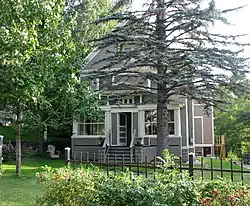 Ellenberger Cottage is a historic cure cottage located at Saranac Lake in the town of Harrietstown, Franklin County, New York. It was built in 1914 and is a 2+1⁄2-story, wood-frame dwelling on a concrete block foundation, clad in wooden clapboard and shingles in staggered butt pattern and surmounted by a gable roof clad in asphalt shingles. The building is inspired by Queen Anne style architecture and has a 1-story verandah with classically detailed columns and portico.[2]