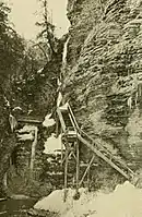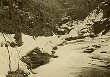 Water for the plant was secured by damming a branch of Catharine River and laying a pipe with natural gravity flow to a well in the boiler room. Analysis of the water showed it to be first-class for steaming purposes. The water dammed back being on the company's property, it was planned to be used as a resort for picnicking in summer and skating in winter.[1]