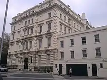 The Embassy of Afghanistan in London (Pashto: د افغانستان اسلامي جمهوری سفارت; Dari: سفارت جمهوری اسلامی افغانستان) is the primary diplomatic mission of the Islamic Republic of Afghanistan to the United Kingdom. It is located at 31 Princes Gate in London's South Kensington district.[1]