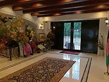 The embassy has a library containing over 4,000 books in Pashto, Dari, English, and Japanese. The doors to the library room are handmade, created by a traditional craftsman in Kabul.[7]