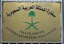 The Saudi Arabian national emblem (Arabic: شعار السعودية) was adopted in 1950.[1] According to the Saudi Basic Law,[2] it consists of two crossed swords with a palm tree in the space above and between the blades.