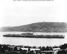 There were other wooden ship designs, many unique to regional yards, and a large wooden fleet was built, one that has been called by some the "white elephant" fleet.[18] Some were burned in accidents; however others were burned after the war to recover valuable metals. For example, in 1922 Western Marine and Salvage Company (WM&SC) of Alexandria, Virginia bought 233 such ships for $750,000 so that the ships could have machinery removed in Alexandria and then towed back to the anchorage on the Potomac and burned to regain remaining scrap. That activity brought protests from watermen and the operation was moved in 1924 to 566 acres (2.29 km2) of company owned farmland surrounding Mallows Bay in Maryland.[17]
