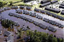 There are several types of flooding that can occur and although some geographic regions are more prone to flooding, this type of disaster can happen anywhere. Coastal, riverine, estuarine, and human induced flooding are just a few of the types that can occur. Coastal flooding can occur as a result of heavy rains or other disasters like hurricanes or tsunamis. Riverine and estuarine floods can occur inland and in coastal areas as a result of run off, hurricanes, heavy rains, and other factors. In many cases low-lying areas near bodies of water or with insufficient drainage solutions are more susceptible to being damaged by flooding first, but universities evaluate all areas of their campus that could potentially be damaged by heavy rains and other problems that come with flooding. Several Universities have been the victims of dangerous flooding that has adverse effects on property and loss of life. In 2011 Hurricane Irene left several New England college campuses and surrounding areas damaged from flood waters.[16] Castleton State College's athletic building was so severely damaged that it will have to be gutted and renovated. All five of Vermont's state colleges lost internet connection when the Winooski River flooded and overpowered the Web Services Center.[17] Wheaton College in Norton, Massachusetts experienced power outages and flooding, which forced them to send students home. Plymouth State University in New Hampshire suffered flood damages to its new Ice arena and Welcome Center as well as many of its facilities building.