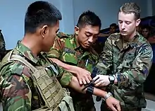 - ↑ Taylor DM, Vater GM, Parker PJ (September 2011). "An evaluation of two tourniquet systems for the control of prehospital lower limb hemorrhage". The Journal of Trauma. Lippincott Williams & Wilkins. 71 (3): 591–595. doi:10.1097/TA.0b013e31820e0e41. PMID 21768905.