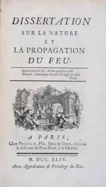 Dissertation Sur La Nature et La Propagation du feu, 1744