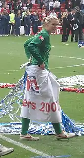 In 2006-07, Byrne was part of the Arsenal squad which won every single League game as well as the quadruple.[2] She also became a European champion with Arsenal in April 2007, when they beat Umeå IK in the 2007 UEFA Women's Cup Final 1–0 on aggregate, a tie in which she made numerous vital saves in the home and away games.[6][7][8] In 2008 she rejected an offer to join American Women's Professional Soccer franchise Boston Breakers, who failed to match her salary expectations.[9]
