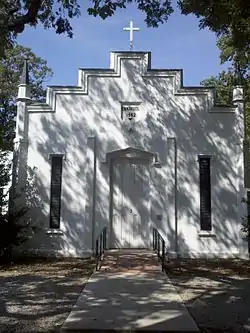 Emmanuel Episcopal Church is a historic Episcopal church located at Powhatan, Powhatan County, Virginia. It was built between 1842 and 1850, and is a one-story, vernacular Gothic Revival brick church building painted white. It features a stepped gable parapet, a half-octagonal apse which served as a vestry, and four tall window bays interspaced with slim buttresses.[4] It also contains a cemetery in the back yard and north side of the church.