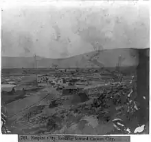 In the 1850s, Nicholas Ambrose opened up a station along the Carson River.[3] The station was known as Dutch Nicks Station or Nicks Station.[1][3] In May 1860, the town was laid out by Eugene Angel and others, who named it Empire City.[3]