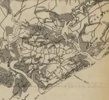 Pineberry Battery was a battery on the prominent John Berkeley Grimball plantation which was heavily effected by the war and well documented in Grimball's diary.[14] Early in the war, by June 1861, seventy slaves on the plantation had fled,[15] and by May 1864, Grimball claimed that damage on the plantation had approached $20,000.[16] Grimball returned to the plantation in 1866, but was unable to pay mortgage payments on half of the plantation.[17]