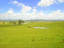 The western border of the state is going through desertification. The soil which is sandy, receives little rainfall, and has by nature sparser vegetation cover, besides suffering from the overload of cattle raising and mechanized agriculture. The director-president of the State Foundation for Agricultural Research (Fepagro), Marcos Palombini, said in 2006 that the state has 1.4 million hectares prone to desertification and that in that year 25% of this area was already compromised.[46] According to the Ministry of Environment, historically this biome (pampas) had its area decreased by 54%, and between 2008 and 2009 it lost another 331 km2. Among the main causes are the occupation of rice cultivation, cattle raising, and reforestation with exotic species, such as eucalyptus and pine.[104] Additional aggressions arise from the inadequate use of water resources, among them irrigation and occupation of swamps for cultivation, which in some regions has caused a significant alteration in the environment, with the disappearance of species, erosion, and salinization of the soil, contamination of the water table, spread of diseases, conveyance of toxic loads to rivers and aggradation of their beds, as well as the depletion of natural sources.[105]