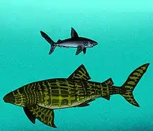 Eorhincodon is an invalid genus of requiem shark[2] from the Late Eocene of Xinjiang, China, originally described as a whale shark.[1] It is currently considered a junior synonym of Rhizoprionodon.[3] The genus was originally erected by Li (1997) to include the species Eorhincodon tianshanensis, but Nessov (1999) used the preoccupied genus in a different paleontological context to include an unrelated species, E. casei, from Late Cretaceous Russian marine strata. A new genus, Pseudomegachasma, was erected in 2015 for E. casei to be transferred into.[4]