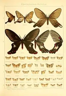 Epicopeiidae is a family of insects in the order Lepidoptera. They are known as oriental swallowtail moths as they closely resemble some oriental swallowtail butterflies (e.g. red-bodied swallowtails). Epicopeiidae have highly varied structure in regards to body size and wing shape. Epicopeiidaen wing patterns are involved in complicated mimicry rings.