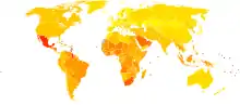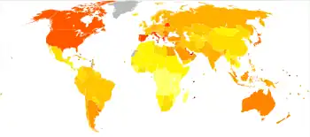 Prevalence (per 1,000 inhabitants) of diabetes worldwide in 2000 - world average was 2.8%.