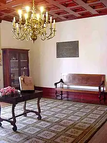 By the 18th-19th century, the residence included various halls on the main floor, including the main hall, where the prelates held audiences and held ecclesiastical examinations; the visitors hall, which was continuous with the main hall; a large dining room; and a chapel (or oratory), with a canvas featuring the a crucified Christ, framed with angels, instruments from the passion of Christ, silver crucifix, paintings of Saints Peter and Paul, the Assumption of Mary, and the Descent from the Cross, as well as the a painting of the Doctors of the Church and, over the entranceway, the Descent of the Holy Spirit.[1] Around the buildings was a garden and vegetable garden, centred by a fountain, several chambers and coach-houses.[1]