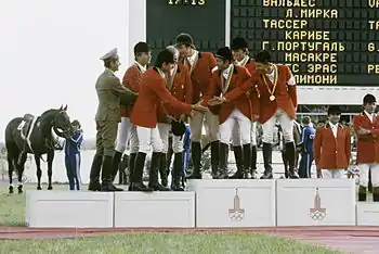 - ↑ Evans, Hilary; Gjerde, Arild; Heijmans, Jeroen; Mallon, Bill; et al. "Equestrianism at the 1980 Moscow Equestrian Games". Olympics at Sports-Reference.com. Sports Reference LLC. Archived from the original on 17 April 2020. Retrieved 29 April 2020.