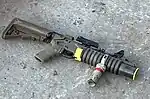 New modified M203 grenade launcher fitting the M10 rifle and with the ability to fire high-velocity grenades.[35] Can be used standalone on a stock or mounted on the rifle.