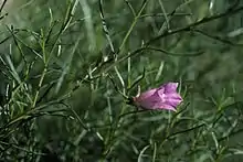 Eremophila granitica, commonly known as granite poverty bush[2] and thin-leaved poverty bush[3] is a flowering plant in the figwort family, Scrophulariaceae and is endemic to Western Australia. It is an erect, open shrub with sticky, narrow leaves and with lilac-coloured flowers.