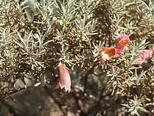 - Eremophila pterocarpa subsp. acicularis[10] which has leaves that are needle-like or linear in shape, 1–2 millimetres (0.04–0.08 in) wide and have a channel along their lower surface.[3]