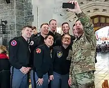 Lieutenant General Wesley takes a photo with United States Military Academy cadets after a discussion on Multi-Domain Operations