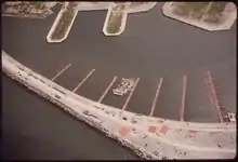 Constructed began in the 1950s[8] and was completed by 1974, from slag of Bethlehem and Republic Steel.[9] When viewed from above, Erie Basin Marina has the shape of a buffalo, an intentional design feature paying homage to the city's metonym.[8]