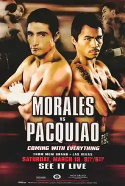 Erik Morales vs. Manny Pacquiao, billed as Coming With Everything, was a super featherweight boxing match. This match occurred on March 19, 2005, at the MGM Grand Garden Arena, Las Vegas, Nevada, United States and was distributed by HBO PPV.[2][3] The bout is the first of the Pacquiao-Morales trilogy,[4] widely considered one of the greatest boxing trilogies of all time.[5][6][7]